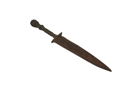 Spada corta con impugnatura troncoconica traforata a giorno e lama triangolare costolata