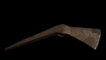 Grande dolabra con un'estremità ad ascia e l'altra a piccone; foro ellittico centrale per l'immanicatura