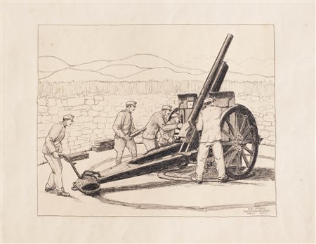 Lotto 404 Julius von Kaan-Albest (München/Monaco 1874 – Berlin/Berlino ca. 1944) Funivia italiana, Monte Erio 10. VI. 1916;Matite, matite colorate, 23,5 x 31 cm, in cornice