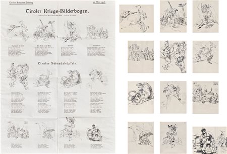 Lotto 407 Thomas Riss (Haslach, Stams 1871 – Innsbruck 1959) Tiroler Kriegs-Bilderbogen, 1916;12 disegni originali per le illustrazioini sul giornale „Tiroler Soldaten-