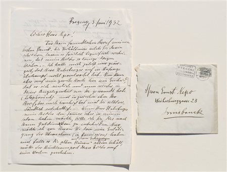 Lotto 410 Rudolf Wacker (Bregenz 1893 – 1939) Lettera a Ernst Nepo, Bregenz, 3. Juni 1932;Lettera di due pagine scritta con inchiostro, 28 x 22,2 cm, busta affrancata