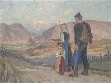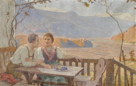 Lotto 411 Albert Stolz (Bozen/Bolzano 1875 – Bozen/Bolzano 1947 Coppia davanti alla patria sudtirolese, anni '30;(Castel Firmiano e conca bolzanina),