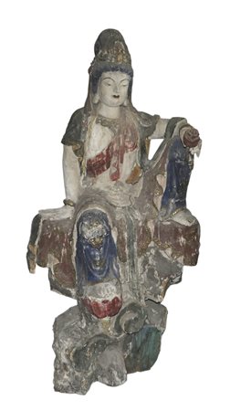 Lotto 416 Guanyin, Bodhisattva femminile della grande compassione, da Xian;Legno dipinto, altezza 128 cm, danni