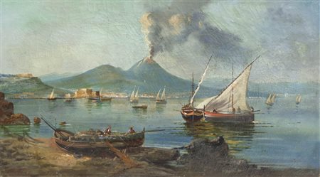 Lotto 421 Schule/Scuola von Posillipo Barche nel golfo di Napoli con il Vesuvio, 1850 circa;Olio su tela, 36,5 x 64 cm, craquelé