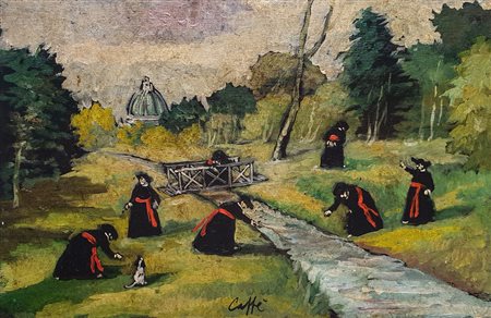 Olio su tavola 25,5x16,5 cm; firma in basso al centro.