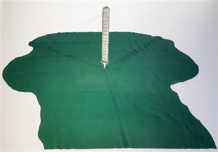 Modellino applicato a panno di stoffa in scatola originale 195x179 cm (panno), h 62 cm (modellino); firma alla base del modellino, tiratura 67/68.