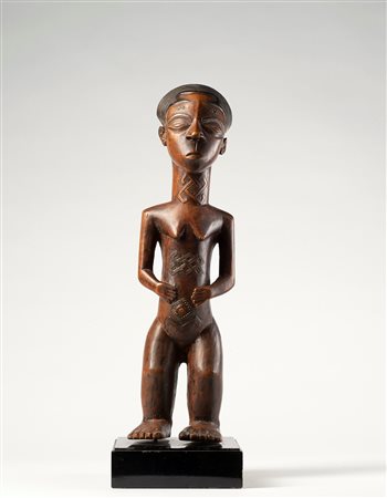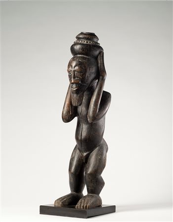 I Lega o, Rega / Warega come in passato erano chiamati, sono circa 200.000 indigeni del Congo che vivono nella foresta equatoriale della regione di Maniema e sulle pendici del lago Tanganica occidentale.La loro società, in passato, era organizzata con una complessa istituzione chiamata Bwame. Divisa in vari livelli, aveva il compito di organizzare la vita sociale, politica, giudiziaria e religiosa della comunità. I passaggi da un livello all’altro si ottenevano dopo aver dato prova di abilità personale nelle varie attività della vita: allevamento corretto dei figli, cattura di grossi animali nelle battute di caccia collettiva, comportamento eroico nelle battaglie tribali, ecc.Sia le maschere, che le sculture realizzate in legno, osso, avorio, rappresentavano per i proprietari il segno identitario del proprio livello gerarchico raggiunto. L’avorio costituiva il materiale del rango più alto. Gli oggetti, una volta acquisiti, venivano custoditi nei panieri di vimini e tramandati con orgoglio ai propri discendenti. Durante le festività del villaggio erano mostrati al pubblico, appesi su trespoli di legno improvvisati, davanti alla propria abitazione. -