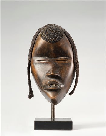 Le maschere realizzate dai Dan sono famose per la bellezza del viso e per la patina scura che le ricopre. Presentano un viso circoscritto in un ovale perfetto, con grandi occhi circolari, o socchiusi come in questo esemplare. Questi modelli, che a partire dagli anni ’30 sono giunti in occidente, sono stati molto apprezzati dai collezionisti. Le differenti tipologie di maschere Dan sono state ben descritte dai ricercatori del Museo di Zurigo Eberhard Fischer e Hans Himmelheber che, dopo lunghe indagini sul terreno, ne hanno raccontato le specifiche funzioni. Le maschere venivano utilizzate per le diverse cerimonie: danze celebrative, iniziazioni di giovani, ricordo di antenati, ecc. -