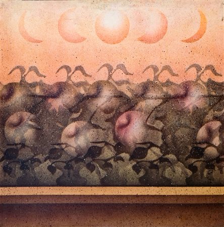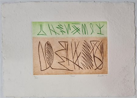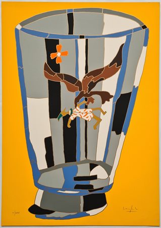Serigrafia 69x49 cm; firma in basso al centrotiratura in basso a sinistra 106/150. Timbro a secco stampatore Dialoghi Club di Biella.