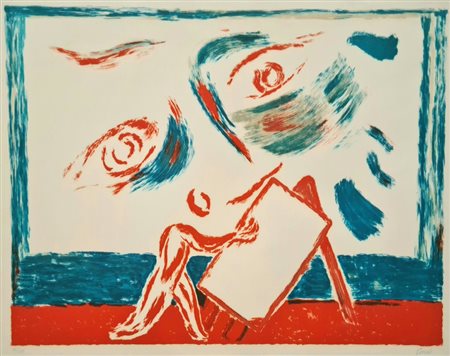 Litografia 50x70 cm; firma e anno in basso a destra, tiratura Pda e dedica ad personam in basso a sinistra.