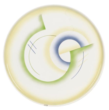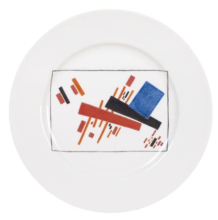 Il periodo suprematista risalente al 1923, quando fu realizzato questo piatto, è considerato il più sperimentale e innovativo di tutte le fasi della produzione della fabbrica. Durante questo periodo Sergei Chekhonin, direttore artistico della fabbrica, ha svolto un ruolo vitale nel coinvolgimento degli artisti d'avanguardia nel processo di produzione. Ha invitato artisti come Kazemir Malevich, Nikolai Suetin e Vassily Kandinsky per progettare piatti e tazze. I concetti dei Suprematisti sull'arte erano incentrati su forme geometriche astratte: il quadrato, il cerchio e la croce, che si adattavano perfettamente alla porcellana.