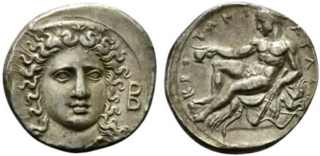 Rare. A splendid piece of late classical style, nicely struck and centered. Lovely grey tone, extremely fine - good extremely fine. -