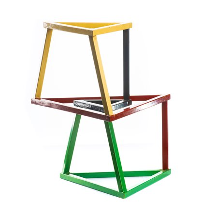 Assemblaggio, cilindri colorati in rilievo su tavola, motore elettrico, cm. 65,5 x 65,5 x 10