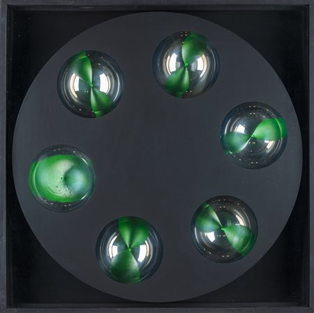 Assemblaggio, 6 semisfere su tavola, motore elettrico, cm. 65 x 65 x 9,5