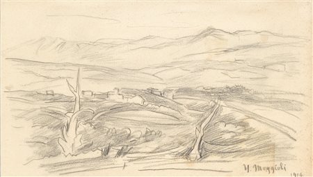 Lotto 1 Umberto Moggioli Trento 1886 - Roma 1919) Paesaggio di Asolo, 1914;Matita su carta, 22 x 38 cm