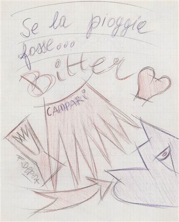 Lotto 5 Fortunato Depero (Fondo 1892 – Rovereto 1960) “Se la pioggia fosse…Bitter Campari”, 1926/27;Matite colorate su carta, 27 x 22 cm