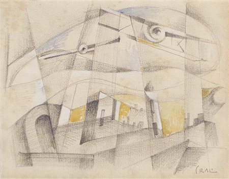 Lotto 8 Tullio Crali (Igalo 1910 – Mailand/Milano 2000) Aerei sulla città, 1929/30;Matita, matita grassa e acquerello su carta
