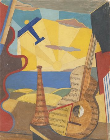 Lotto 13 Gregorio Sciltian (Nakhichevan-na-Donu 1900 – Rom/Roma, 1985) Natura morta con mandolino, 1932;Olio su tela, 50 x 59,5 cm, al retro timbro illegibile ( Russo….),