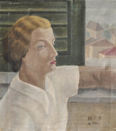 Lotto 15 Neri Nannetti (Florenz/Firenze 1889 – 1957) Ritratto di donna, 1935;Olio su tela, 50 x 45 cm, al retro iscrizioni a pennarello, craqueles
