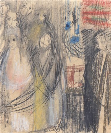 Lotto 17 Riccardo Licata (Turin/Torino 1929 – Venedig/Venezia 2014) Processione, 1953;Pastello su carta applicata su tavola, 35,5 x 31 cm