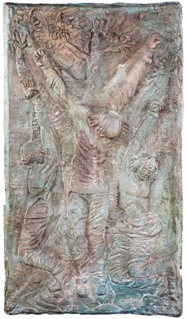 Lotto 15 Pericle Fazzini, Crocefissione, bassorilievo in bronzo patinato 104x58 Firmato "P. Fazzini" in basso a destra.