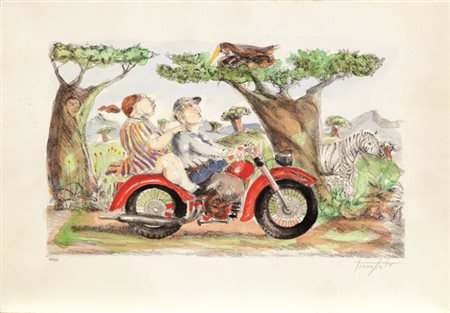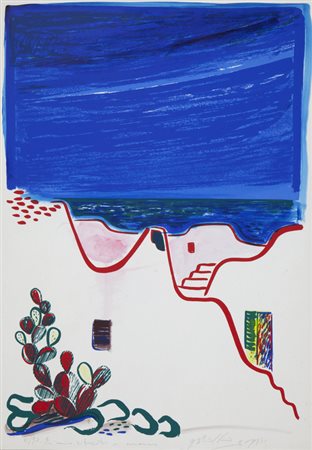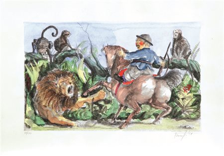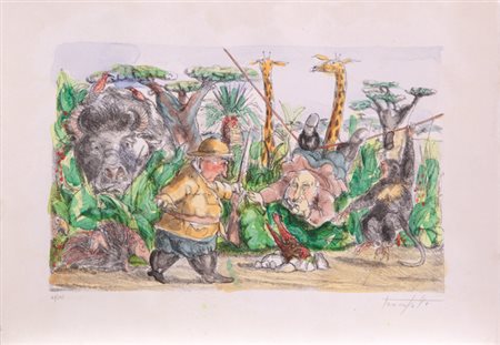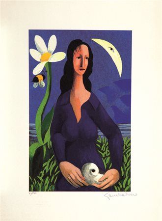 Lotto 22 BEPPE LABIANCA(SAN FERDINANDO DI PUGLIA 1947 - BARI 2021)litografia su cartacm 34x49esemplare P.D.A. colorata a manofirmata in basso a destranumerata in basso a sinistra