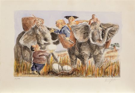 Lotto 8 ALDO RISO(SANTA MARIA DI LEUCA 1927)incisione acquerellata a manocm 60x80firmata in basso a sinistratimbro a secco Grafica d'Arte Lombardi