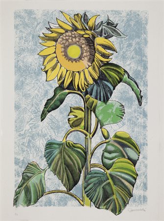 Lotto 16 FRANCO AZZINARI(SAN DEMETRIO CORONE 1949)'Ginestre'litografia a coloriesemplare P.A.cm 34x35firmata in basso a destranumerata in basso a sinistraal retro: certificato di autenticit‡ rilasciato dalla Galleria d'Arte L'Approdo-Bari