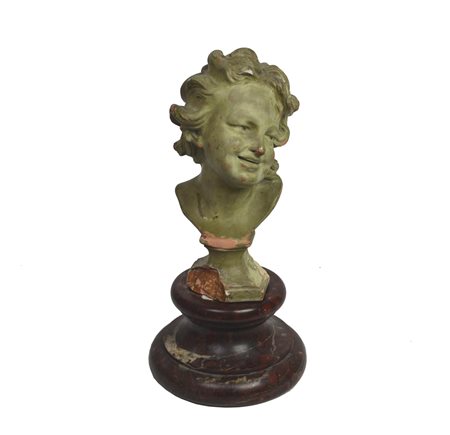 terracotta dipinta, h cm 28 su base in marmo, h cm 40