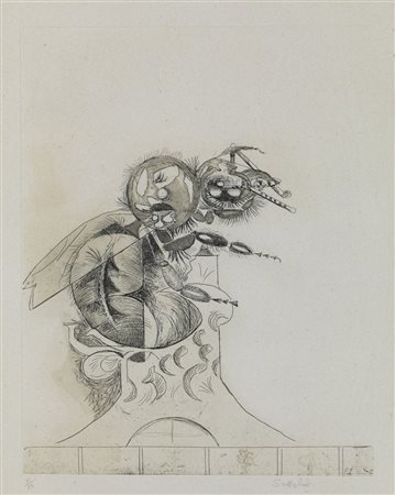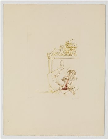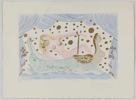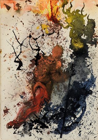 Lotto 7 DALI' SALVADOR (1904 - 1989) Senza titolo. Acquaforte e acquatinta. Cm 76,50 x 56,50. 13/150. Tiratura e firma in basso a matita. Dimensione lastra: 39.5x57 cm. Filigrana Arches, France, in basso a destra.