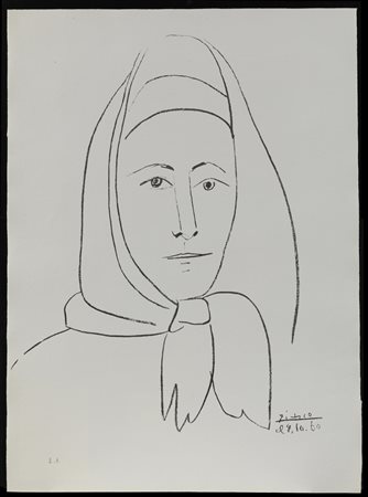 Lotto 8 PICASSO PABLO (1881 - 1973) Senza titolo. Litografia. Cm 53,50 x 73,50. E.a. Tiratura a matita in basso a sinistra. Firma e anno in lastra in basso a destra. Grafica realizzata in occasione della Conferenza Europea per l'Amnistia ai condannati politici spagnoli. Edizione totale: 400 esemplari in numeri arabi; 100 eseplari in numeri romani; 100 esemplari siglati EA. Carta Fabriano. Stampatore: Stamperia d'arte il Bisonte, Firenze. Pubblicazione: Catalogue Picasso Lithograohe Mourlot, Sauret edition du Livre n.357; G.Bloch Picasso Edition de l'ouvre gravé et litographiée 1904-196. Edition Kofrnfeld Berna 1984, Tomo I pag.2019 n.1009.