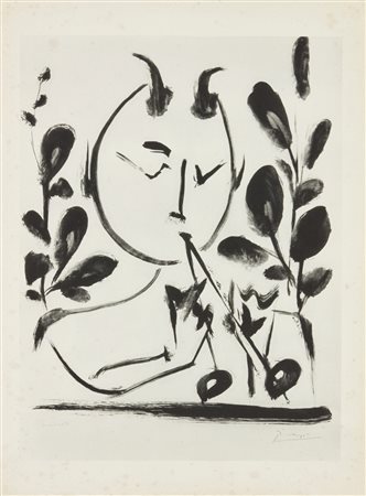 Lotto 10 PICASSO PABLO (1881 - 1973) Fauno con rami. 1948. Litografia. Cm 36,00 x 49,00. P.d.a.Tiratura e firma in basso in lastra. Dimensione lastra: 39x29.5 cm. Carta Arches, France. Edizione totale: 50 esemplari firmati e numerati + p.d.a. Esposizione: Pablo Picasso: The Time con Françoise Gilot. Pubblicazioni: Müller, Markus, ed. Bielefeld: Kerber. 2002. (142p) Picasso, guerra i pau (Museu Picasso, Barcellona, 26 maggio - 26 settembre 2004). Ocaña, María Teresa, ed. Barcellona: Institut de Cultura de Barcelona, Museu Picasso. 2004. (180). Difetti. Cornice presente