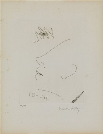 Lotto 15 MAN RAY (1890 - 1976) Ritratto di Isadora Duncan. Acquaforte. Cm 18,50 x 25,00. 77/100. Tiratura e firma in basso a matita. Dimensione lastra:14x11.5 cm. Difetti. Cornice presente