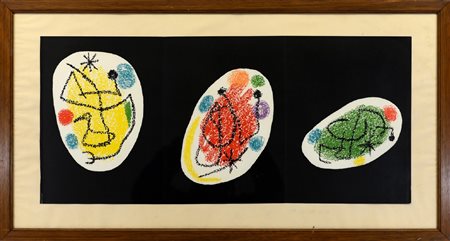 Lotto 20 MIRO' JOAN (1893 - 1983) N.515. Litografia a colori. Cm 73,50 x 31,50. Litografia a colori per la rivista “XX Siècle”, n.31, Dicembre 1968. Grafica a tre facciate. Editore: XXe Siècle, Stampatore: Mourlot. Bibliografia: Leiris et al (1977) Miró Lithographs, Vol. 3: 1964-1969. Parigi: Maeght, 1972-1992. Cornice presente
