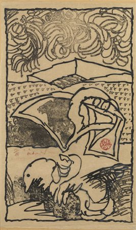 Lotto 23 ALECHINSKY PIERRE (n. 1927) Brabançonne. 1986. Xilografia. Cm 59,50 x 98,00. III/XII e.a. Tiratura, firma e anno in basso a sinistra a matita. Edizione totale: 60 copie + XII e.a.+ 10 H.c. Stampatore: Jean Clerté. Cornice presente