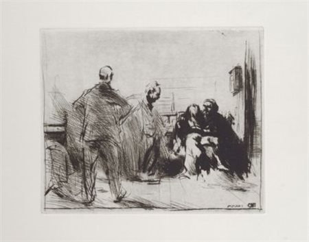Lotto 15 Anonimo del XX sec. Mietitori Puntasecca, mm. 360x245 (foglio); mm. 245x165 (lastra) Firma illeggibile in basso a destra.