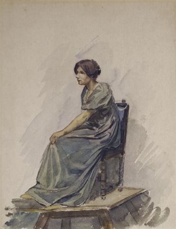 Lotto 4 Anonimo del XIX sec. Modella seduta Acquerello su carta riportata su cartone, cm. 30x23,5