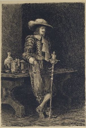 Lotto 5 Anonimo del XIX sec. Christian de Neuvillette Inchiostro su carta, cm. 24,5x17 Firma illeggibile in basso a destra.