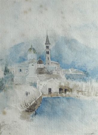 Lotto 11 Anonimo del XIX sec. Amalfi Matita e acquerello su carta, cm. 22,5x37 Siglato in basso a sinistra: "OB".