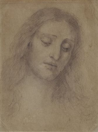 Lotto 8 Anonimo del XIX sec. Volto di Cristo Matita su carta, cm. 24x18 da Leonardo da Vinci.
