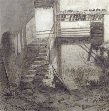 Lotto 16 Anonimo del XX sec. Casolare abbandonato, 1916 Inchiostro su cartone, cm. 31x29,8 Siglato "ADA" in basso a sinistra.