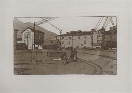 Lotto 20 Anonimo del XX sec. Scorcio di paese Acquaforte, mm. 350x250 (foglio); mm. 160x280 (lastra)
