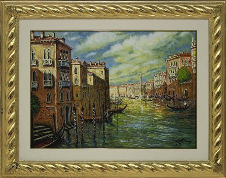 Lotto 1 Giovan Francesco Gonzaga, Veduta Veneziana, Anni novanta, serigrafia su tela, cm 50x70. Esemplare 164/300.