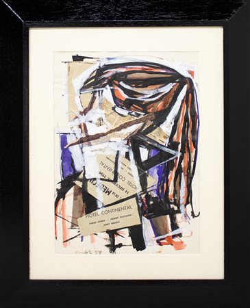 Lotto 7 Claudio Cintoli, Senza Titolo, 1958, collage su carta, cm 44x32. Autentica a cura di Vittorio Cintoli.