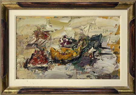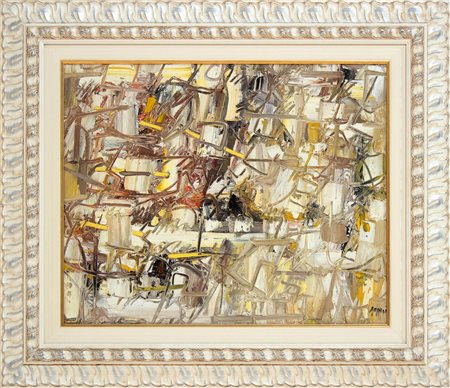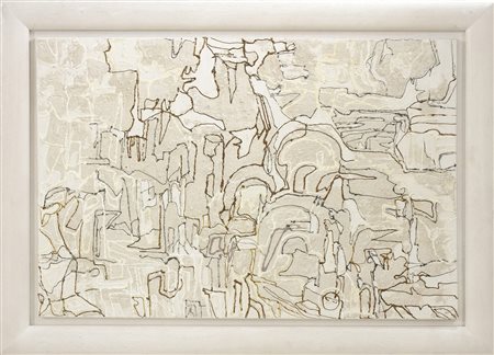 Lotto 12 Ennio Finzi, Composizione, 1980, tecnica mista su carta intelata, cm 70x100. Autentica a cura dell'artista.