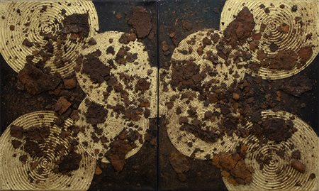Lotto 16 Lorenzo Filomeni, Incontri, 2014, volume acrilico colla e ruggine su tela, cm 60x100. Dittico su tela. Autentica a cura dell'artista.
