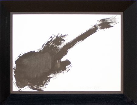 Lotto 19 Giuseppe Chiari, Chitarra, Anni novanta, tecnica mista su carta, cm 50x70. Archivio Giuseppe e Victoria Chiari n.2882.