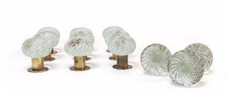 Dodici pomoli in cristallo a costine ritorte e ottone dorato.