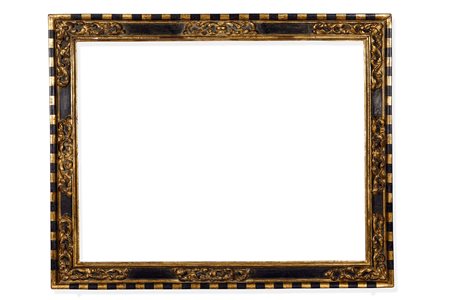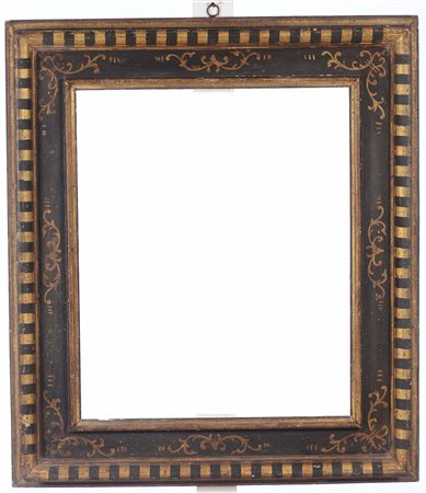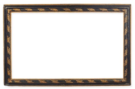 Lotto 18 Cornice modanata ebanizzata e dorata, Veneto XVIII secolo, decori a foglie susseguenti, battuta e profilo dorati, cm 85x132 luce cm 70x116