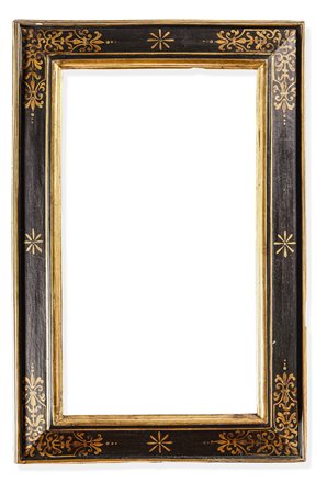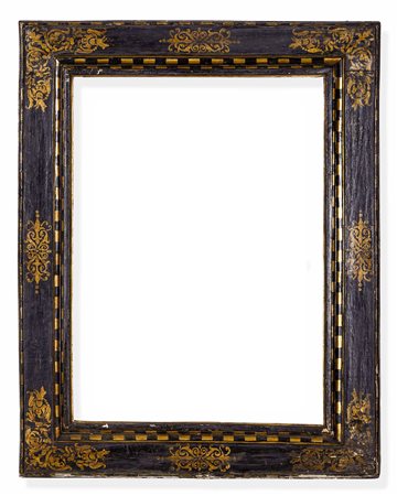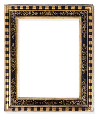 Lotto 14 Cornice a cassetta ebanizzata con decori a racemi dorati, Siena XVI secolo, cm 111,5x85,7 luce cm 82,5x59,5